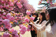 불국사 공원 겹벚꽃 만개…‘인생샷’ 명소로 인기