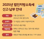 경주시는 지난 4일 2024년 12월 말 기준 결산법인을 대상으로 한 법인지방소득세 집중 신고·납부 기간을 30일까지 운영한다고 밝혔다.법인지..