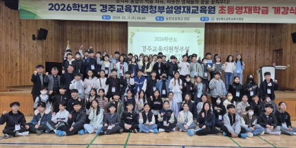 경주교육지원청(교육장 황영애)는 지난 21일 동천초에서 경주교육지원청부설영재교육원 초등영재 개강식을 개최했다. 이날 개강식에는 2026학년도 경주교육지원청부설영재교육원에 입학하는 초등 영재교육대상 학생 90명과 학부모 및 영재 지도강사 등 200여명이 참석했다. 경주교육지원청부설 영재교육원은 이번 개강식을 시작으로 11월까지 운영되며 ▲초등 수학 ▲초등 과학 ▲발명 ▲융합 ▲로봇 ▲중등 수학 ▲중등 과학 등 총 7개의 학급으로 편성되어 수업을 진행한다. 선발된 학생들은 매주 토요일 실시되는 주제별 프로젝트 수업과 하계 창의·인성 집중 수업 등 다양한 영재교육과정을 1년간 이수하게 된다. 영재교육원장인 권오웅 경주교육지원청 교육지원과장은 인사말을 통해 “초지능과 초연결로 대변되는 AI 혁명기에는 단편적인 지식보다 다양한 분야를 연결하는 융합적 사고가 핵심이며, 학생들이 실패를 두려워하지 않는 행복한 탐구 과정을 통해 미래의 불확실성을 기회로 바꾸는 핵심 인재로 거듭나도록 지원하겠다”고 밝혔다.