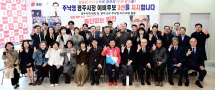 같은 날 천년향토회도 주낙영 예비후보 선거사무소를 방문했다. 이근훈 회장을 비롯한 회원 30명은 선거사무소에서 “3·3·7” 구호를 외치며 주 예비후보의 3선 도전을 응원했다. “3·3·7”은 ‘주낙영 시장 3선’, ‘경주 예산 3조 원’, ‘경주 관광객 7천만’을 뜻한다.앞서 지난 19일에는 경주신중년사관학교 관계자 40명이 주낙영 예비후보 선거사무소를 찾아 지지 방문했다.